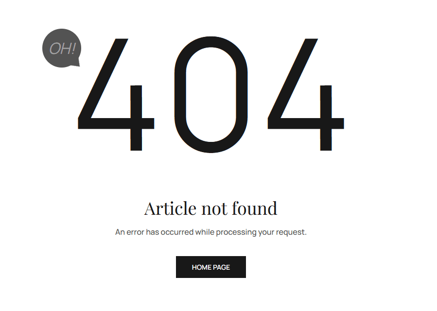 Each JA Joomla Template has its own matching 404 page. Below is the screenshot of 404 page style.